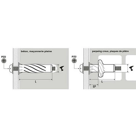 Excellentes performances par gonflement dans les matériaux pleins et par nouage dans les matériaux creux.